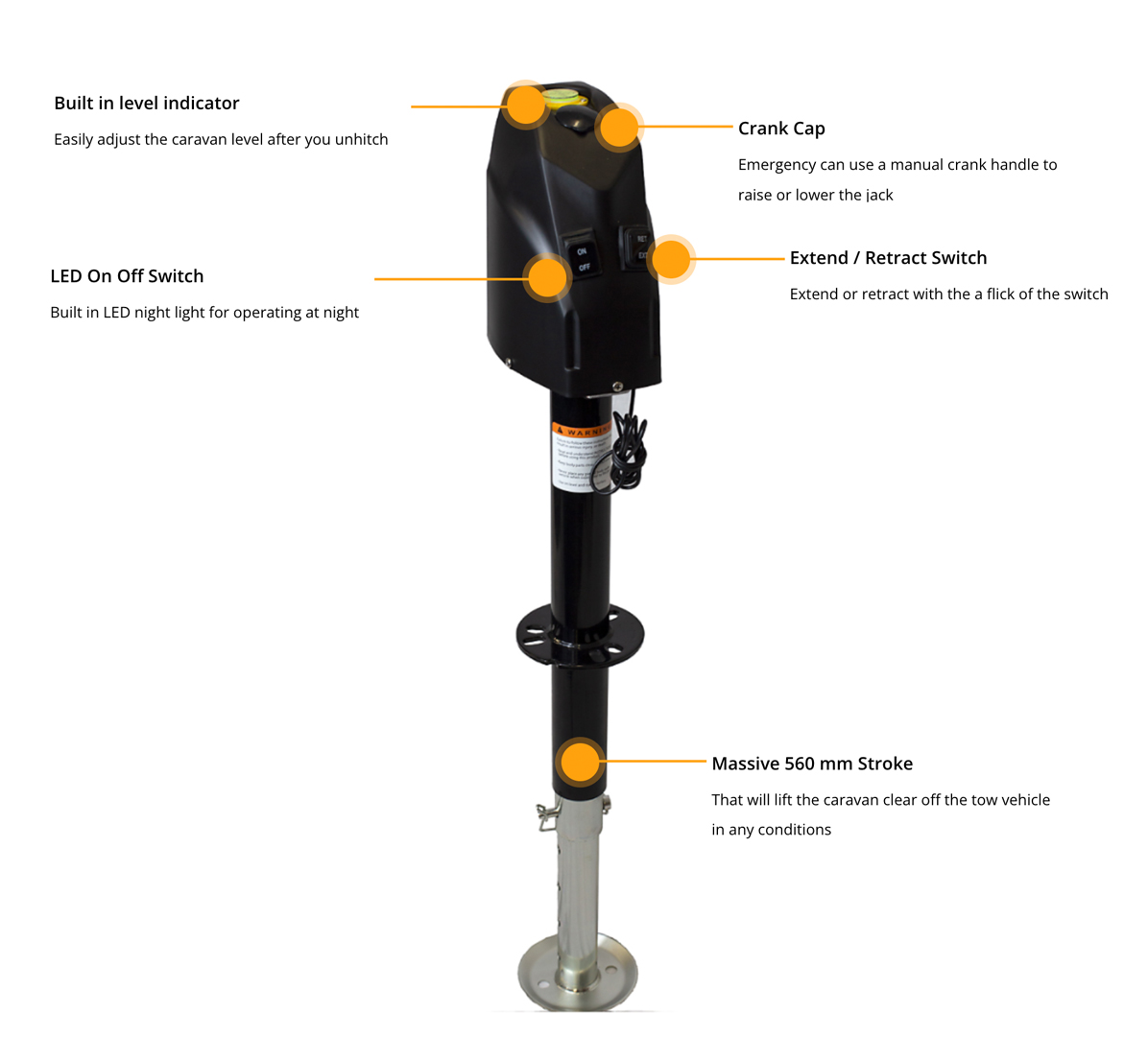 Gone are the days of manually winding the jockey wheel to raise or lower the caravan or trailer.